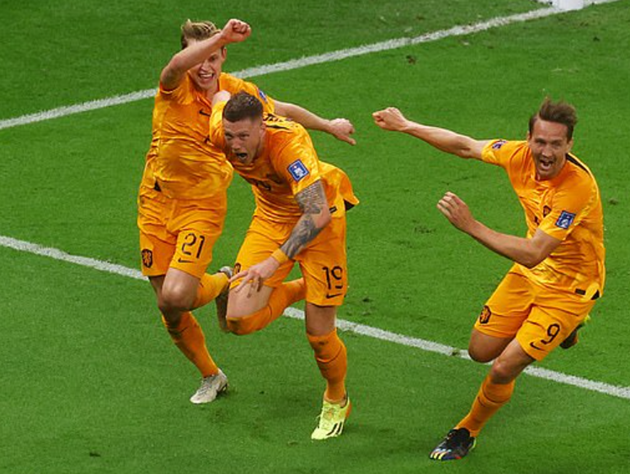 Cơn lốc màu da cam ghi hai bàn ở quãng thời gian cuối và bù giờ hiệp 2. Tiền đạo Wout Weghorst xuất sắc lập cú đúp bàn thắng, đưa trận đại chiến vào hiệp phụ. Cả Hà Lan và Argentina đều không thể có thêm bàn sau đó và phải phân định thắng thua ở loạt sút luân lưu.
