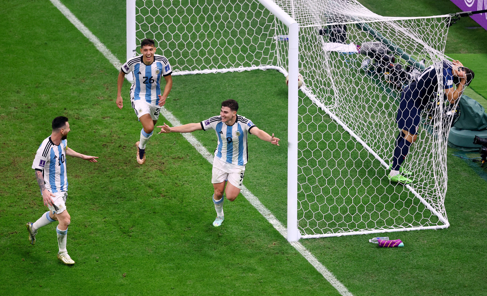 Chính Alvarez gây áp lực khiến cho Brozovic thực hiện quả tạt không tốt, dẫn đến cơ hội phản công. Anh chạy một mạch 80 mét, giữa lúc bóng đi qua De Paul rồi Messi, trước khi xuyên qua các hậu vệ Croatia rồi sút tung lưới Dominik Livakovic, một trong những thủ môn hay nhất giải đấu.