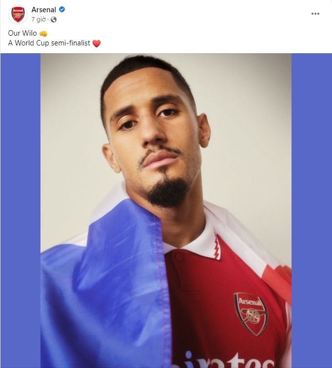 Rạng sáng 11/12 (giờ Hà Nội), tuyển Pháp đánh bại Anh 2-1 ở tứ kết World Cup 2022. Sau trận, Arsenal đăng ảnh Saliba cùng dòng mô tả: “Wilo (biệt danh của Saliba) của chúng ta, một người vào bán kết World Cup”.
