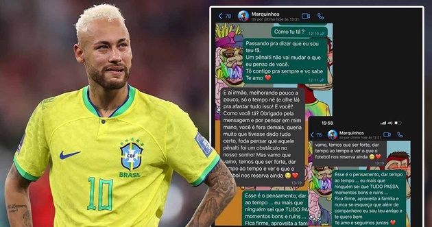 Sau thất bại, ngôi sao PSG thực hiện một hành động chứng minh toàn đội khao khát chiến thắng và đoàn kết như thế nào tại World Cup 2022. Cụ thể, chưa cần sự cho phép của các đồng đội, Neymar đã công khai đoạn tin nhắn của tập thể trên WhatsApp lên MXH cá nhân.