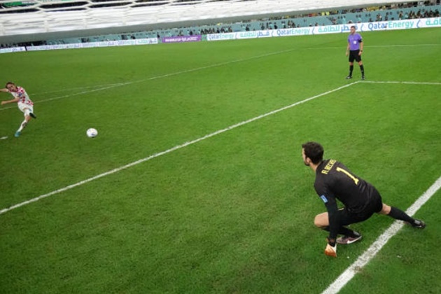 Bắt đầu từ Modric với tình huống thoát pressing bên phần sân nhà do chính cựu đồng đội lâu năm Casemiro theo kèm, để lộ ra khoảng trống rất lớn trước hàng tứ vệ của ĐT Brazil. Croatia sau đó tổ chức phản công và một đường nhả bóng vừa tầm cho tuyến hai dứt điểm với một chút may mắn đã khiến Alisson phải bó tay.