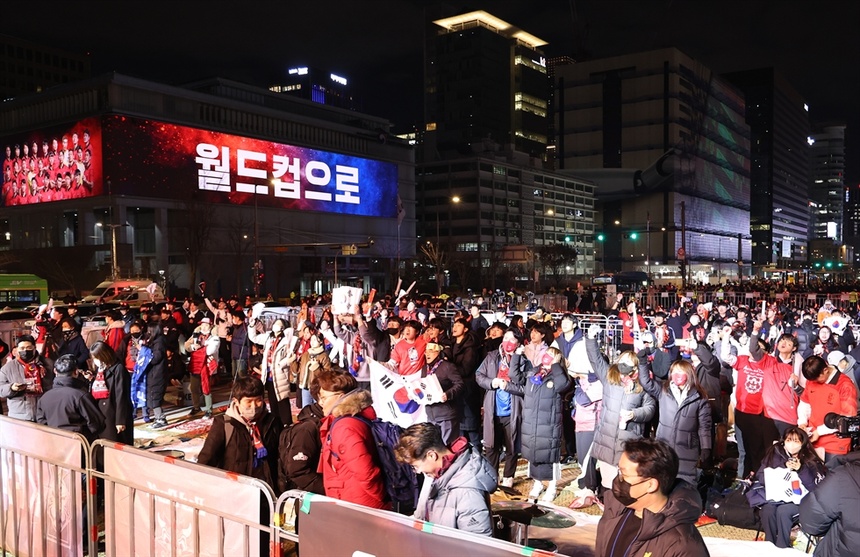 An ninh được thắt chặt khi đám đông CĐV tụ tập theo dõi trận đấu. Chính quyền Hàn Quốc muốn đảm bảo thảm kịch ở Itaewon không lặp lại. Khung cảnh náo nhiệt ở quảng trường Gwanghwamun được ghi nhận vào lúc gần 3h sáng (giờ địa phương).