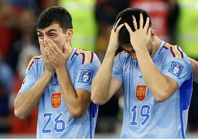 Tây Ban Nha thất bại cay đắng ở vòng 16 đội World Cup 2022. Ảnh: Reuters.