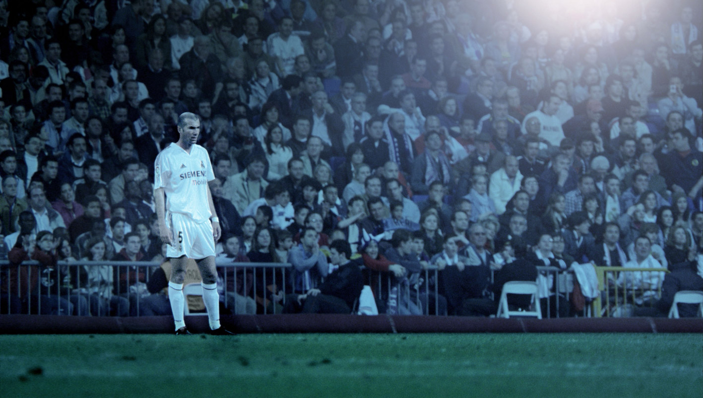 Zidane trong bộ phim “Zidane: A 21st Century Portrait”.Giá như họ đã chờ đợi. Vào năm 2005, một đoàn làm phim do Philippe Parreno và Douglas Gordon dẫn đầu đã quyết định nghiên cứu mọi chuyển động của Zinedine Zidane trong một trận đấu. “Zidane: A 21st Century Portrait” (Zidane: Chân dung thế kỷ 21) là một dự án đầy tham vọng, sử dụng 17 máy quay khác nhau chỉ để tập trung vào siêu sao người Pháp trong trận đấu sân nhà của Real Madrid trước Villarreal ở mùa giải 2004/05.