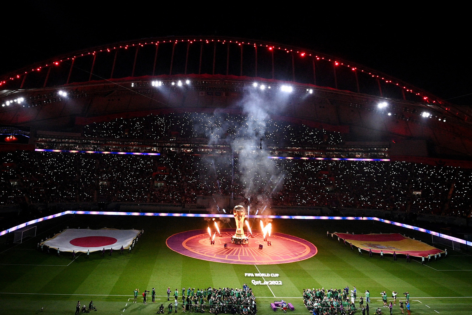 1. Được chiếu sáng bằng hệ thống đèn chiếu màu đỏ cực mạnh gắn vào một mái vòm khổng lồ, cấu trúc hỗ trợ mái nhấp nhô mang đến cho sân vận động Khalifa – một trong những địa điểm chính World Cup 2022 – không khí của một chiếc tàu lượn siêu tốc khổng lồ.
