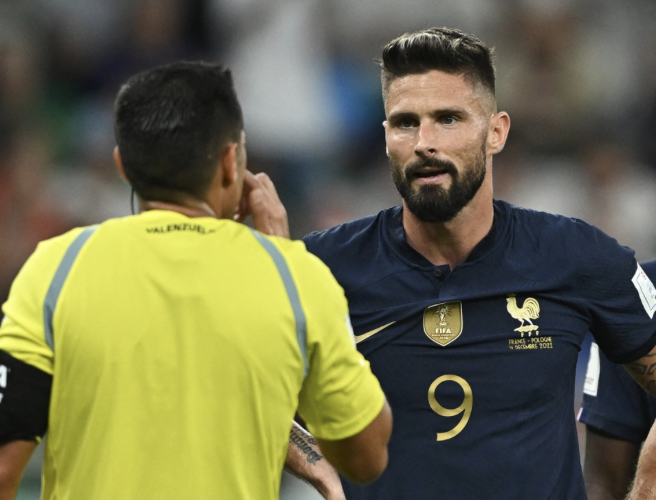 Tình huống diễn ra ở phút 58 trong trận knock-out của Pháp với Ba Lan vào tối 4/12. Giroud có pha ngã vô-lê đẹp mắt vào lưới nhưng trọng tài Jesús Valenzuela Saez lại không công nhận. “Vua áo đen” người Venezuela thổi dừng trận đấu trước đó vì thủ môn Ba Lan nằm sân.