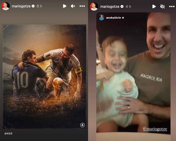Trên trang cá nhân, tiền vệ đang thuộc biên chế Eintracht Frankfurt cũng chia sẻ bức ảnh ghép hình Messi ở World Cup 2014 và giải đấu năm 2022.