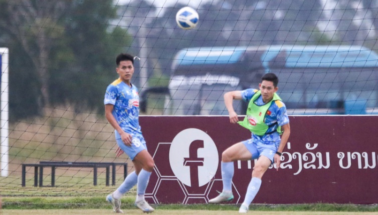 Hai Long (cầu thủ bên phải) nỗ lực tập luyện.Không khí tập luyện của đội tuyển Việt Nam tại Trung tâm Đào tạo bóng đá trẻ Liên đoàn Bóng đá Lào đang diễn ra hết sức khẩn trương và nghiêm túc. Trước thềm trận đấu quan trọng gặp đội tuyển Lào vào ngày 19/11 trong khuôn khổ vòng loại Asian Cup 2027, thầy trò HLV Kim Sang Sik đang tập trung hoàn thiện những mảng miếng chiến thuật cuối cùng.
