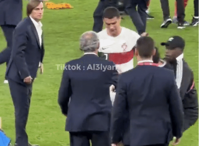 Sau tiếng còi mãn cuộc, Cristiano Ronaldo bật khóc và tiến thẳng vào đường hầm. Một CĐV chạy đến gần CR7 nhưng bị đội ngũ an ninh ngăn chặn. Về phía Ronaldo, anh được cho là đã tỏ thái độ và lấy tay đẩy thanh niên này ra xa.