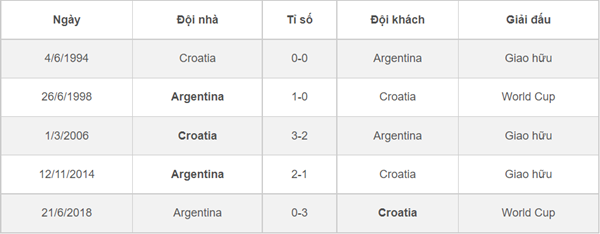 Tại đấu trường World Cup, Argentina từng đánh bại Croatia với tỷ số 1-0 khi gặp nhau ở vòng bảng tại Pháp năm 1998.