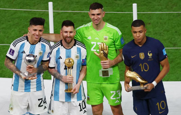 Phần thưởng đến với Messi khi anh nhận giải thưởng Cầu thủ xuất sắc nhất World Cup 2022. Hai người đồng đội khác của tiền đạo 35 tuổi là Enzo Fernandez và thủ thành Emiliano Martinez cũng được vinh danh sau những đóng góp lớn.