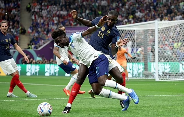 Bukayo Saka dường như đã bị Dayot Upamecano phạm lỗi trong tình huống dàn xếp tấn công. Chính pha mất bóng của Saka mở ra cơ hội để tuyển Pháp cầm bóng trước khi tìm được bàn thắng khai thông bế tắc đến từ Aurelien Tchouameni.