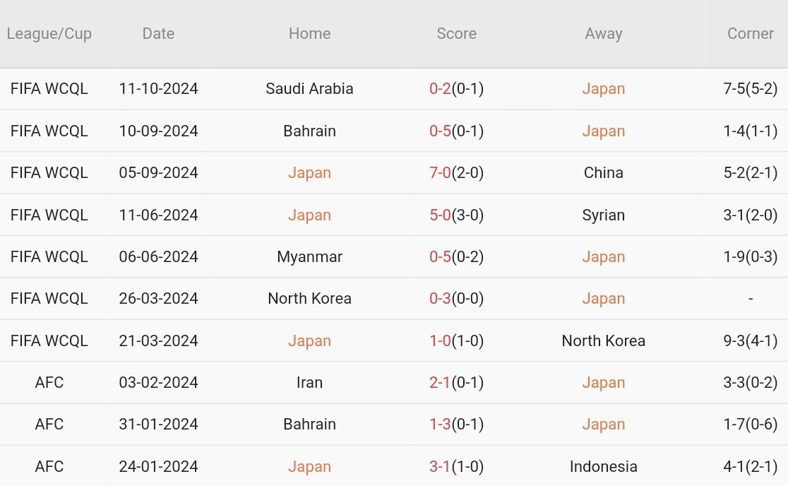 Thời gian & địa điểm- 17h35, ngày 15 tháng 10. thứ Ba – Sân vận động Saitama 2002Phong độVượt qua vòng loại thứ hai World Cup 2026 với 4 chiến thắng liên tiếp trước Triều Tiên, Myanmar và Syria, Nhật Bản đã tiếp tục giữ vững phong độ bùng nổ ở vòng loại thứ ba.Samurai Xanh đã dễ dàng hủy diệt Trung Quốc đến 7 bàn không gỡ, trước khi lần lượt đánh bại Bahrain lẫn Ả Rập Saudi với tỷ số 5-0 và 2-0. Cho đến nay, đoàn quân của HLV Hajime Moriyasu vẫn chưa để thủng lưới bất kỳ bàn thua nào trong suốt chiến dịch Vòng loại World Cup 2026.