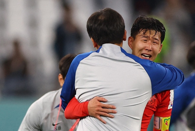 Son Heung-min khóc trong trận Hàn Quốc lội ngược dòng Bồ Đào Nha 2-1 ở lượt cuối bảng H hôm 2/12. Đây là kỳ World Cup tiếp theo mà Hàn Quốc đánh bại một đội bóng châu Âu ở trận cuối vòng bảng, sau trận thắng 2-0 trước Đức ở World Cup 2018. Tuy nhiên khác với bối cảnh 4 năm trước, Hàn Quốc lần này không phải dừng bước từ vòng bảng.