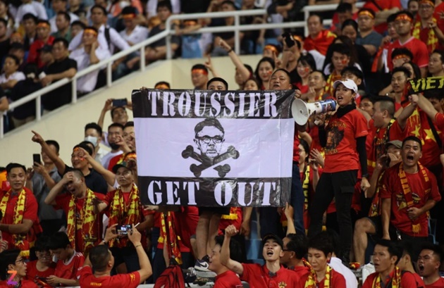 ””Sa thải HLV đi”, “Nếu còn tự trọng, xin ông hãy từ chức”, “Ông ta đang phá nát bóng đá Việt Nam”, “Thế trận quá chán”, “HLV chỉ biết ngồi như tượng”, “Tôi không hiểu HLV Troussier huấn luyện kiểu gì nữa”…