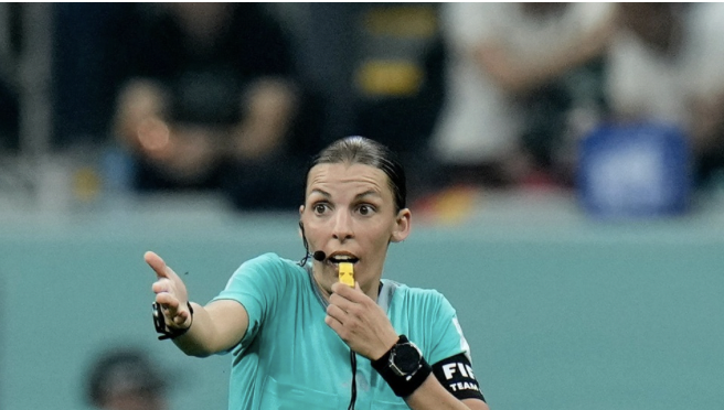 Nữ trọng tài Frappart làm nhiệm vụ trong trận Đức 4-2 Costa Rica tại World Cup 2022.