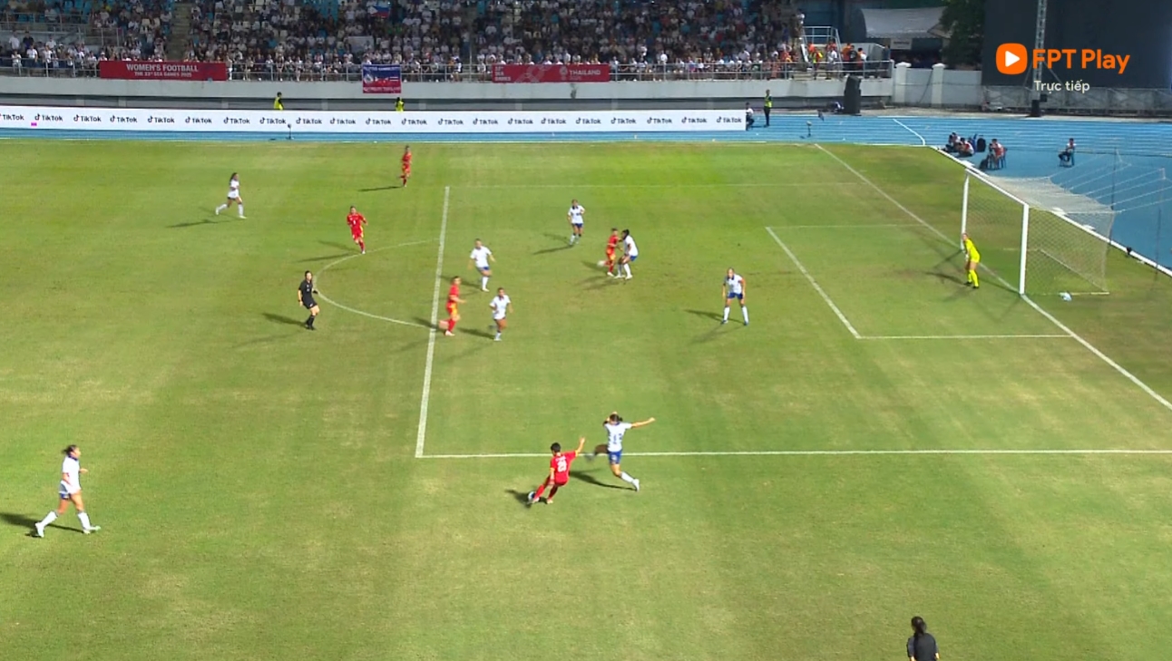 Tình huống gây tranh cãi nổ ra ở phút 29 của trận đấu tối 17/12. Từ một pha dàn xếp tấn công bài bản, Vạn Sự có pha thoát xuống đầy tốc độ bên hành lang cánh phải. Sau nhịp xử lý kỹ thuật khéo léo, cô tung đường chuyền chuẩn xác vào trong để Bích Thùy băng cắt, thực hiện cú đánh đầu quyết đoán đưa bóng nằm gọn trong lưới Philippines.