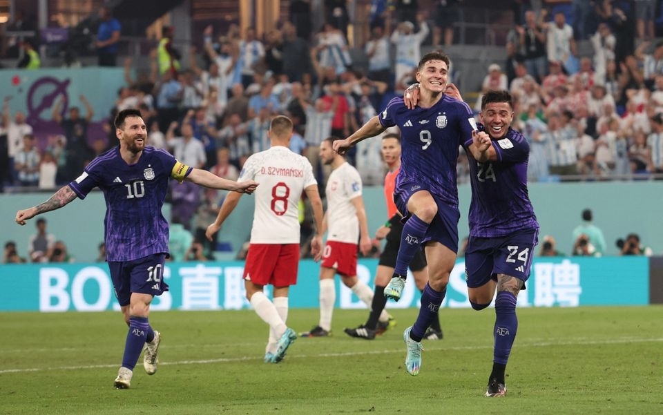 Hai trận đầu, Argentina vào trận với hệ thống 4-4-1-1, với Lautaro Martinez đá trung phong, phía sau là Messi đóng vai trò số 10. Vào trận gặp Ba Lan, Martinez ngồi ngoài, Alvarez thế chỗ, Argentina chơi với hệ thống 4-3-3, Messi đóng vai trò số 9 ảo, Angel Di Maria và Alvarez ở hai cánh. Alvarez đa năng hơn Martinez vì vừa đá tốt ở cánh, vừa đá tốt vị trí trung phong. Lúc Alvarez ghi bàn thứ hai cho Argentina ở phút 67, anh đang chơi số 9 đích thực khi HLV Lionel Scaloni xoay sang dùng hệ thống 4-4-1-1.