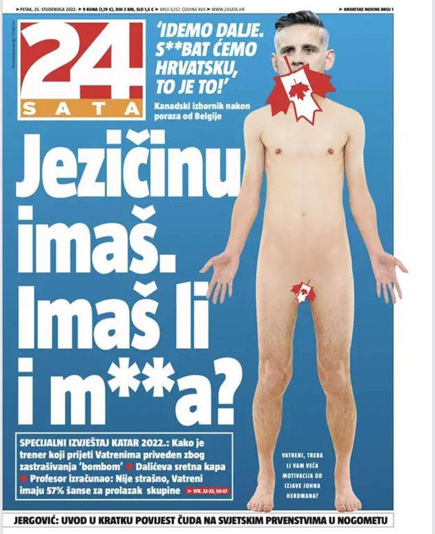 Croatia đương nhiên không vui với lời văng tục của Herdman nên truyền thông nước này nhanh chóng đáp trả. Cụ thể, trang nhất của một tờ báo Croatia đăng ảnh huấn luyện viên Canada khỏa thân với tiêu đề “Ông có lưỡi, nhưng ông có bi không?”