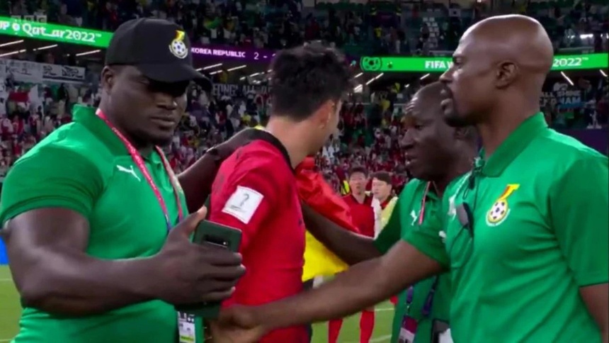 Trợ lý HLV cho tuyển Ghana George Boateng nhanh chóng nhìn thấy và ngăn chặn lại hành động này, trong khi Son Heung-min tìm cách quay mặt đi. Người dùng mạng xã hội suy đoán người đàn ông là nhân viên an ninh hoặc thành viên ban huấn luyện của Ghana.