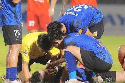 Trọng tài Nguyễn Mạnh Hải phản xạ nhanh cứu cầu thủ HAGL
