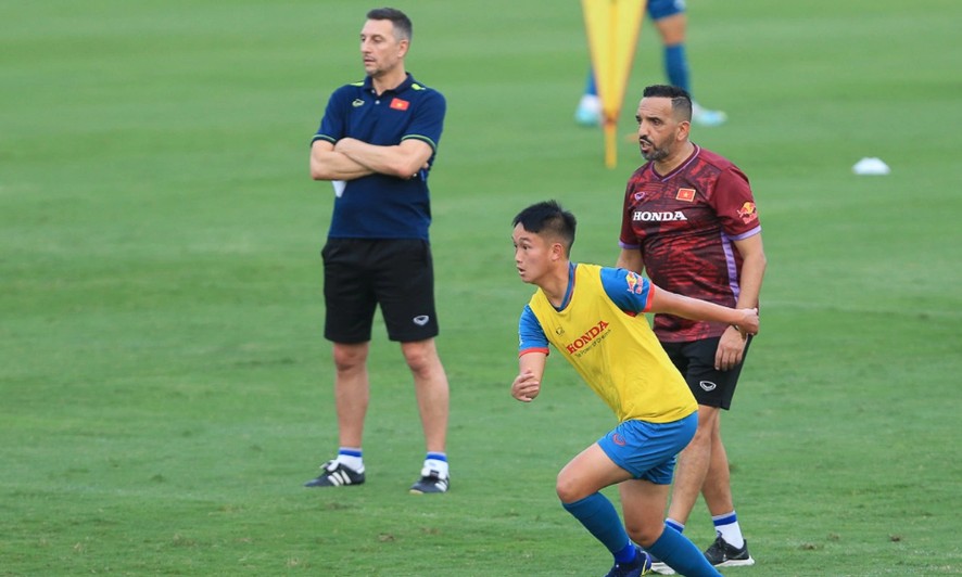 Andrej Nguyễn An Khánh trên sân tập của U23 Việt Nam. Ảnh: VFF.Tiền vệ Việt kiều Andrej Nguyễn An Khánh đã trở thành mục tiêu của ít nhất 5 CLB V-League giàu tiềm lực tài chính. Tuy nhiên, cầu thủ sinh năm 2005 đã từ chối tất cả lời đề nghị để tiếp tục phát triển sự nghiệp tại châu Âu.