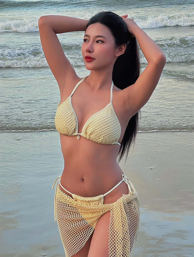 Trong bộ bikini hai mảnh, người đẹp sinh năm 1991 khoe trọn vóc dáng săn chắc, vòng eo quyến rũ và làn da trắng sáng. Điều đáng nói là dù đã trải qua một lần sinh nở, Tường Linh vẫn duy trì được một thân hình lý tưởng, thành quả của quá trình tập luyện kỷ luật và chăm sóc bản thân.