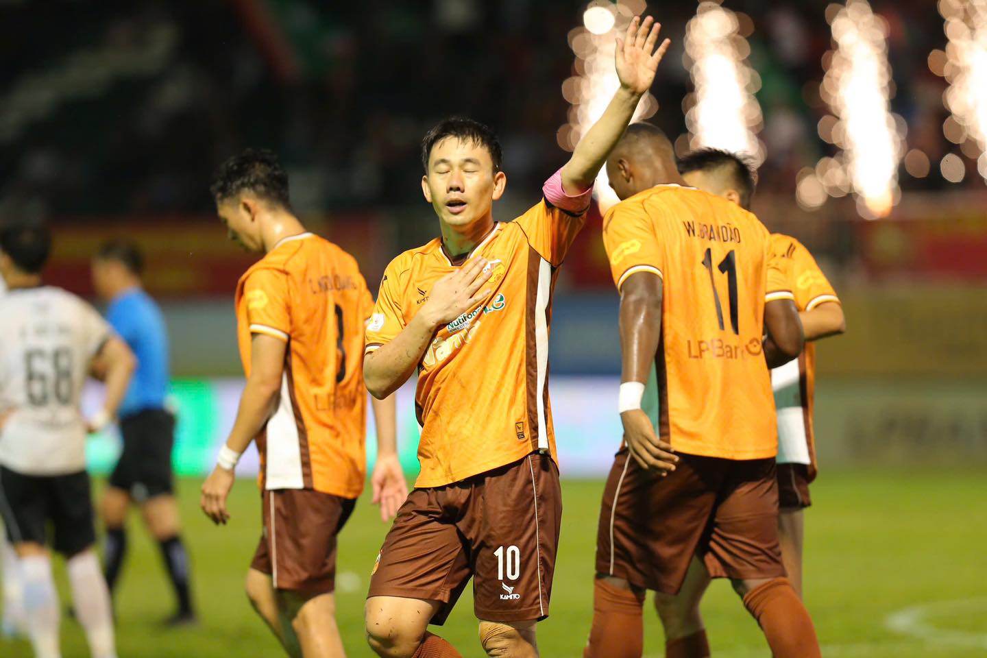 Trần Minh Vương tỏa sáng với cú đúp, giúp HAGL giành lại 1 điểm trước Đà Nẵng. Ảnh: CLB HAGL.Tiếp đón CLB Đà Nẵng tại Pleiku, HAGL đã trải qua 90 phút đầy khó khăn trước nỗ lực giành điểm để trụ hạng của đội khách. Phút 45, mành lưới của đội bóng Phố núi đã rung lên sau pha lập công đến từ Nguyễn Minh Quang. Và dù Trần Minh Vương đã kịp gỡ hòa ở phút 62, Phan Văn Long đã nâng tỷ số lên 2-1 chỉ 11 phút sau đó.