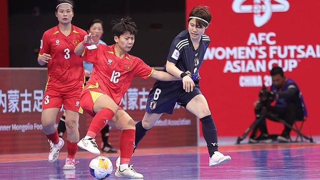 Futsal nữ Việt Nam nỗ lực bất thành trước Nhật Bản. Ảnh: AFC.Ngay từ những phút đầu, dù vấp phải sức ép lớn từ đội bóng từng giành ngôi Á quân châu lục, các học trò của HLV Nguyễn Đình Hoàng vẫn giữ vững ý chí.