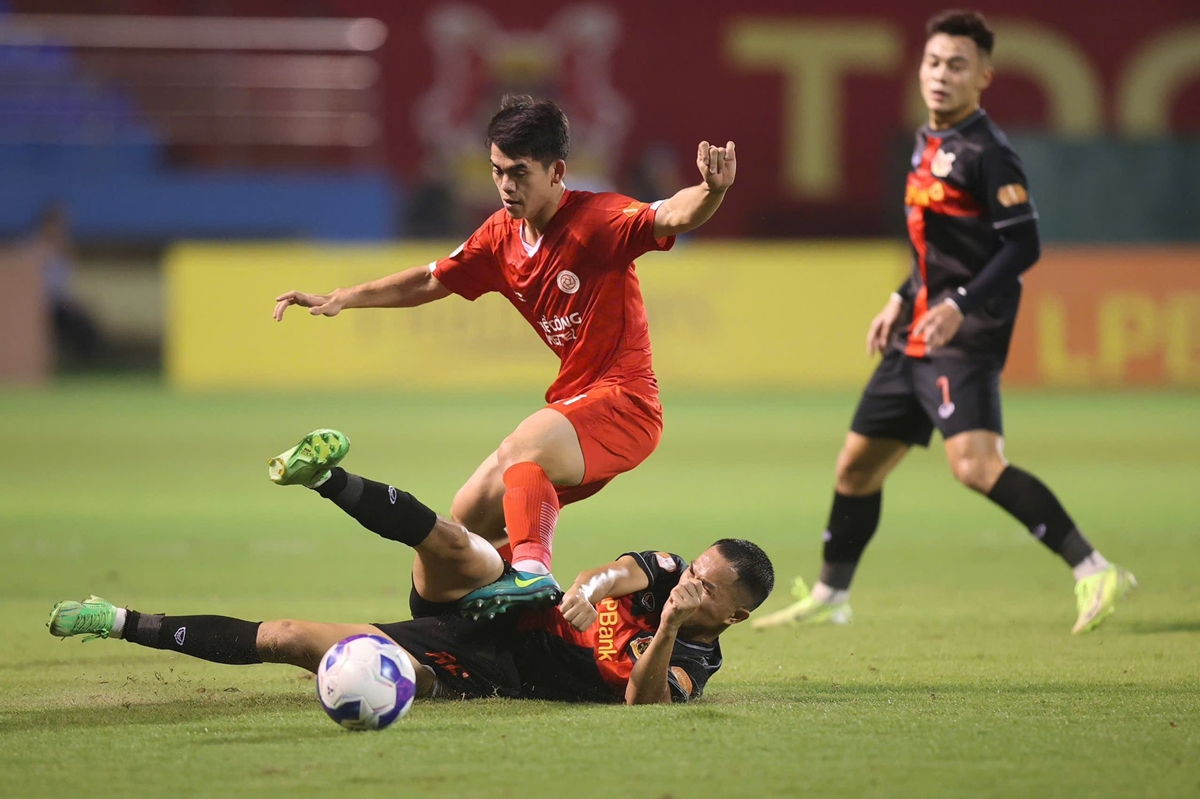 Trận đấu giữa Ninh Bình và Thể Công Viettel đã diễn ra căng thẳng lẫn kịch tính. Ảnh: Thể Công Viettel.Trận đại chiến vòng 6 V-League 2025/26 giữa Ninh Bình và Thể Công Viettel kết thúc với tỷ số hòa 1-1 đầy kịch tính trên sân Ninh Bình. Dù mất người từ sớm do thẻ đỏ của trung vệ Bùi Tiến Dũng, Thể Công Viettel vẫn xuất sắc gỡ hòa, khiến HLV Velizar Popov không giấu được sự tự hào.