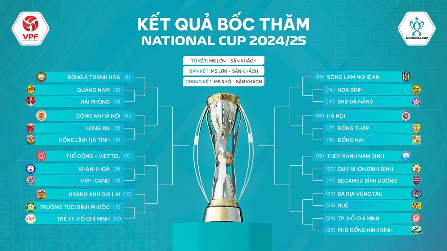Bốc thăm Cup Quốc gia 2024/25: ĐKVĐ vào nhánh khó
