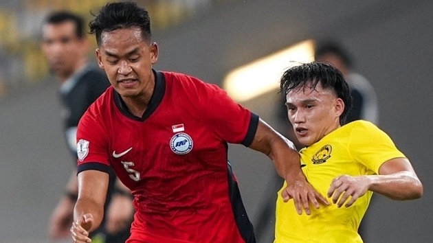 Malaysia (áo vàng) gây thất vọng.Dù thể hiện lối chơi tấn công chủ động và tạo ra nhiều cơ hội nguy hiểm, Malaysia vẫn phải chấp nhận trận hòa 0-0 đầy tiếc nuối trước Singapore trong lượt cuối bảng A ASEAN Cup 2024.Trên sân Bukit Jalil, đội chủ nhà tung ra tới 5 cú sút trúng đích, nhưng tất cả đều bị thủ môn kỳ cựu Hassan Mahbud xuất sắc cản phá. Khi Mahbud bất lực, thì những pha dứt điểm của Paulo Josue và Harith Haiqal lại lần lượt đưa bóng dội xà ngang, bỏ lỡ cơ hội mở tỷ số trong sự tiếc nuối của hàng vạn khán giả.