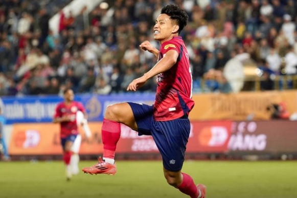 Văn Thanh ăn mừng bàn thắng.Trận đấu bắt đầu với sự thận trọng từ cả hai đội. SLNA chọn lối chơi phòng ngự phản công, trong khi CAHN cố gắng kiểm soát bóng nhưng gặp khó khăn trong việc tạo ra cơ hội rõ ràng. Phút 7, VAR được sử dụng khi Đình Trọng (CAHN) có pha va chạm với Olaha (SLNA) trong vòng cấm. Tuy nhiên, trọng tài quyết định không thổi phạt đền vì tác động không rõ ràng.