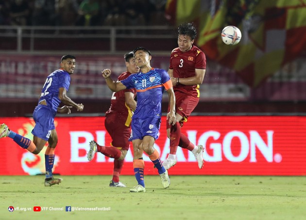 ĐT Việt Nam cần có phương án chống bóng bổng trước Ấn Độ. Ảnh: VFF.Đáng nói hơn, khâu chống bóng bổng đang là vấn đề của ĐT Việt Nam trong những trận đấu gần đây khi chúng ta để thủng lưới khá nhiều. Hai bàn thua ở màn đọ sức cùng Nam Định vào ngày 09/10 hay tình huống để Thái Lan gỡ hòa vào dịp FIFA Days tháng 09 là ví dụ rõ nhất. Bởi thế, trước Ấn Độ, thầy trò HLV Kim Sang-sik sẽ phải lưu ý ở các pha không chiến. Đây cũng là dịp để Những chiến binh Sao Vàng rèn luyện và khắc phục sai sót.