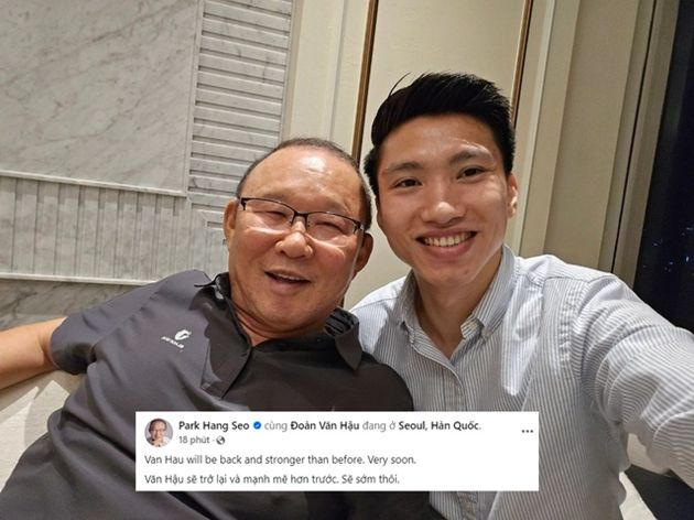 Tại xứ sở kim chi, Văn Hậu cũng luôn cập nhật tình hình của bản thân đến khán giả thông qua mạng xã hội. Và trong một bài đăng trên trang cá nhân vào sáng nay (30/9), HLV Park Hang-seo cũng đã cung cấp thông tin tích cực về cậu học trò cũ trong tấm ảnh chụp chung với dòng chú thích: “Văn Hậu sẽ trở lại và mạnh mẽ hơn trước. Sẽ sớm thôi”.Tại Hàn Quốc, Văn Hậu đã được điều trị tại một bệnh viện hàng đầu chuyên về y học thể thao, nơi được HLV trưởng ĐT Việt Nam – Kim Sang-sik – giới thiệu. Cầu thủ 25 tuổi rất hy vọng lần thăm khám này sẽ giúp anh khắc phục triệt để chấn thương gót chân.Trước đây, Đoàn Văn Hậu từng là sự lựa chọn ưu tiên của HLV Park Hang-seo cho vị trí hậu vệ trái, cả ở đội U23 lẫn đội tuyển quốc gia. Tuy nhiên, sau khi trở về từ Hà Lan, anh gặp phải nhiều chấn thương nghiêm trọng và ít có cơ hội ra sân ở các giải đấu đỉnh cao. Trận đấu gần nhất của Văn Hậu tại V-League diễn ra vào ngày 27 tháng 8 năm 2023, và từ đó hậu vệ này đã phải nghỉ thi đấu cả mùa giải 2023/24.Tại đội tuyển quốc gia, Văn Hậu cũng chưa có cơ hội tham gia bất kỳ trận đấu chính thức nào kể từ AFF Cup 2022. Ngôi sao sinh năm 1999 đã phải bỏ lỡ Asian Cup 2023 và vòng loại World Cup 2026, điều này khiến anh chưa có dịp làm việc cùng HLV Philippe Troussier và HLV Kim Sang-sik.