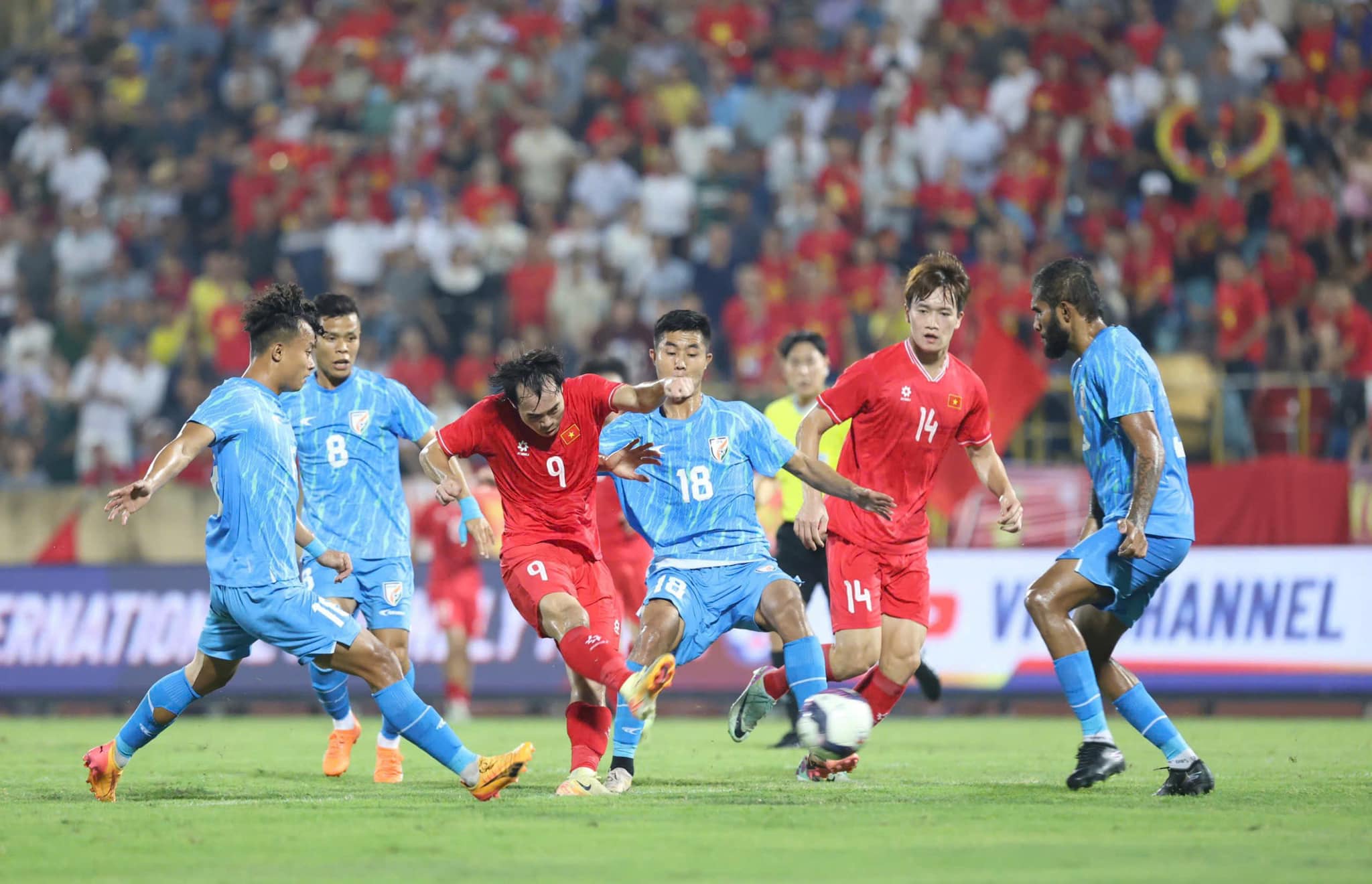 Dù vậy, Nam Định lại đón nhận tin không vui khi tiền đạo Nguyễn Văn Toàn gặp chấn thương trước trận và sẽ phải nghỉ thi đấu trong khoảng vài tuần. Văn Toàn chơi xông xáo khi tuyển Việt Nam đọ sức Ấn Độ trong dịp FIFA Days tháng 10. Ảnh: CLB Nam Định.Cụ thể, HLV Vũ Hồng Việt tiết lộ về tình hình của cậu học trò khi cho biết: “Trong buổi tập nhẹ ngay trước trận gặp SLNA, Văn Toàn đã dính chấn thương cổ chân. Theo chẩn đoán của các bác sĩ, khả năng cậu ấy phải nghỉ vài tuần mới có thể quay lại được”.Thông tin Văn Toàn phải ngồi ngoài cũng sẽ khiến HLV Kim Sang-sik phải đau đầu. Hiện tại, trên hàng công tuyển Việt Nam, Nguyễn Văn Quyết vừa tuyên bố giã từ sự nghiệp quốc tế, Nguyễn Đình Bắc sa sút phong độ còn Phạm Tuấn Hải cũng chỉ vừa mới trở lại sau chấn thương, do đó việc VT9 gặp vấn đề thể trạng sẽ khiến nhà cầm quân người Hàn Quốc cảm thấy lo lắng.