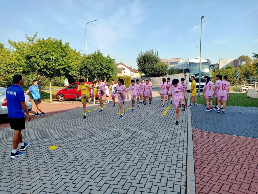 Nữ Việt Nam hào hứng với chuyến tập huấn tại Cộng hòa SécTheo thông tin từ kênh truyền thông chính thức của Liên đoàn bóng đá Việt Nam (VFF), sau trận đấu giao hữu đầu tiên với CLB đến từ Đức – RB Leipzig, các học trò của HLV Mai Đức Chung đang rất hào hứng hướng đến trận đấu thứ 2 với FC Pardubice.Đội tuyển Nữ Việt Nam tập luyện. Ảnh: VFF.“Trong chuyến tập huấn lần này, tôi đặt ra mục tiêu là có thể học hỏi nhiều nhất từ đội bạn cũng như tích lũy kinh nghiệm để làm sao về nước có thế thi đấu tốt nhất,” tiền đạo Hải Yến cho biết.