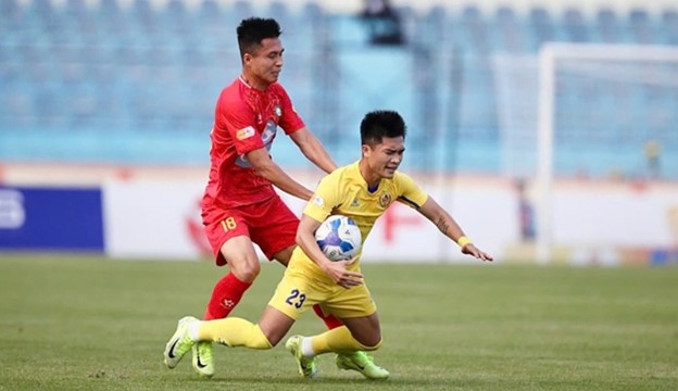Thanh Hóa gục ngã trước Quảng Nam. Ảnh: VPF.Bàn thắng duy nhất của trận đấu được ghi bởi Oduenyi trên chấm phạt đền ở phút 77. Trọng tài quyết định cho Quảng Nam hưởng 11m sau khi tham khảo VAR và xác định thủ môn Xuân Hoàng đã phạm lỗi với Atshimene trong vòng cấm.Thanh Hóa chơi lấn lướt nhưng thiếu sắc bénNgay từ những phút đầu, Thanh Hóa là đội cầm bóng nhiều hơn và tổ chức tấn công khá chủ động. Đội khách liên tục tạo ra các tình huống nguy hiểm nhờ sự cơ động của Luiz Antonio, Ribamar và Gustavo Santana. Tuy nhiên, trong suốt hiệp một, các chân sút của Thanh Hóa không thể tận dụng cơ hội.