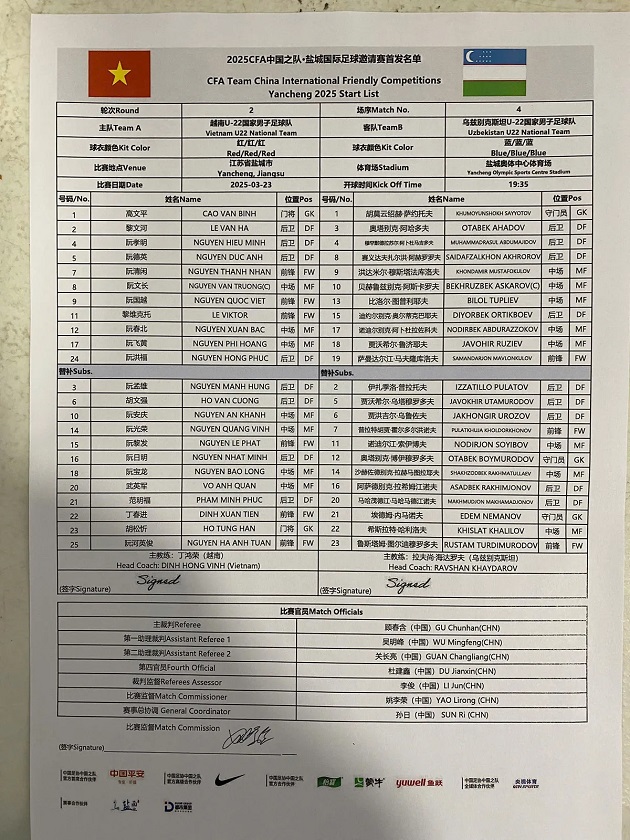 BongDa.com.vnTrận đấu giữa U22 Việt Nam và U22 Uzbekistan tại giải giao hữu CFA Team China 2025 kết thúc với tỷ số hòa 0-0.